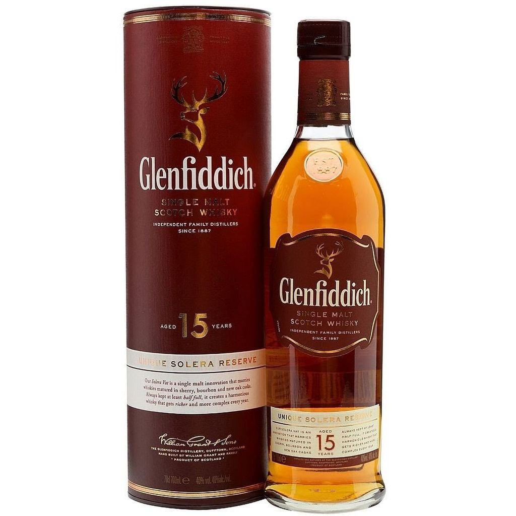 Whisky Glenfiddich 15 anos é envelhecido pelo sistema de soleras. Composto por 100% puro malt escocês. Nova garrafa. Mesmo Sabor!!! Exemplificando a tradição de inovação de nossa família, nossa expressão de 15 anos é criada usando uma técnica iniciada por nosso Malt Master e seus sabores quentes e picantes são transformados com a alquimia do tanque Solera. Exclusivamente entre os destiladores de uísque escocês, nosso Malt Master amadurece nosso Glenfiddich 15 anos em três tipos de barril de carvalho, xerez, bourbon e carvalho novo, para impregná-lo com ricos sabores de frutas e distintas notas de especiarias e mel. Ele então o casa em nossa cuba única feita à mão em pinho Oregon Solera, que é sempre mantida pelo menos meio cheia, para dar um belo equilíbrio e criar um uísque deliciosamente harmonioso, consistente e complexo que fica cada vez mais complexo com o tempo. Nosso sistema Solera é o culminar de mentes curiosas e do espírito pioneiro de nossa família. É também o segredo por trás deste uísque se tornando a primeira expressão de 15 anos a entrar no top dez de single malts mais vendidos. Ótimo para experimentar um malte premium, maduro, rico e sedoso com um aroma intrigantemente complexo e camadas sutis e doces de carvalho xerez, maçapão, canela e gengibre.